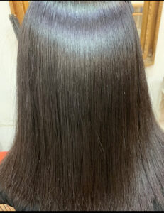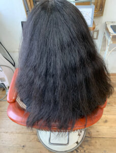全てのクセを伸ばした後、定着液をお付けして、流して終了となります