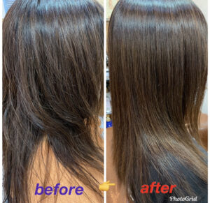 ただし、縮毛矯正と違い、数回にわたって髪質を改善していくことが必要ですので、一度ですべてを解決されたい場合は縮毛矯正メニューがおすすめです