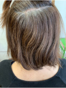 多くの美容室で使用しているカラーでは髪を傷める可能性の高いアルカリ剤をメインに使用する為、パサパサやきしみが出やすいのですが、Hareluで使用しているダメージレスカラーやオーガニックからーであれば、髪に栄養を補給しながら染めたり、広がりを抑えながら染めることができるので、ツヤのある髪に仕上がります。